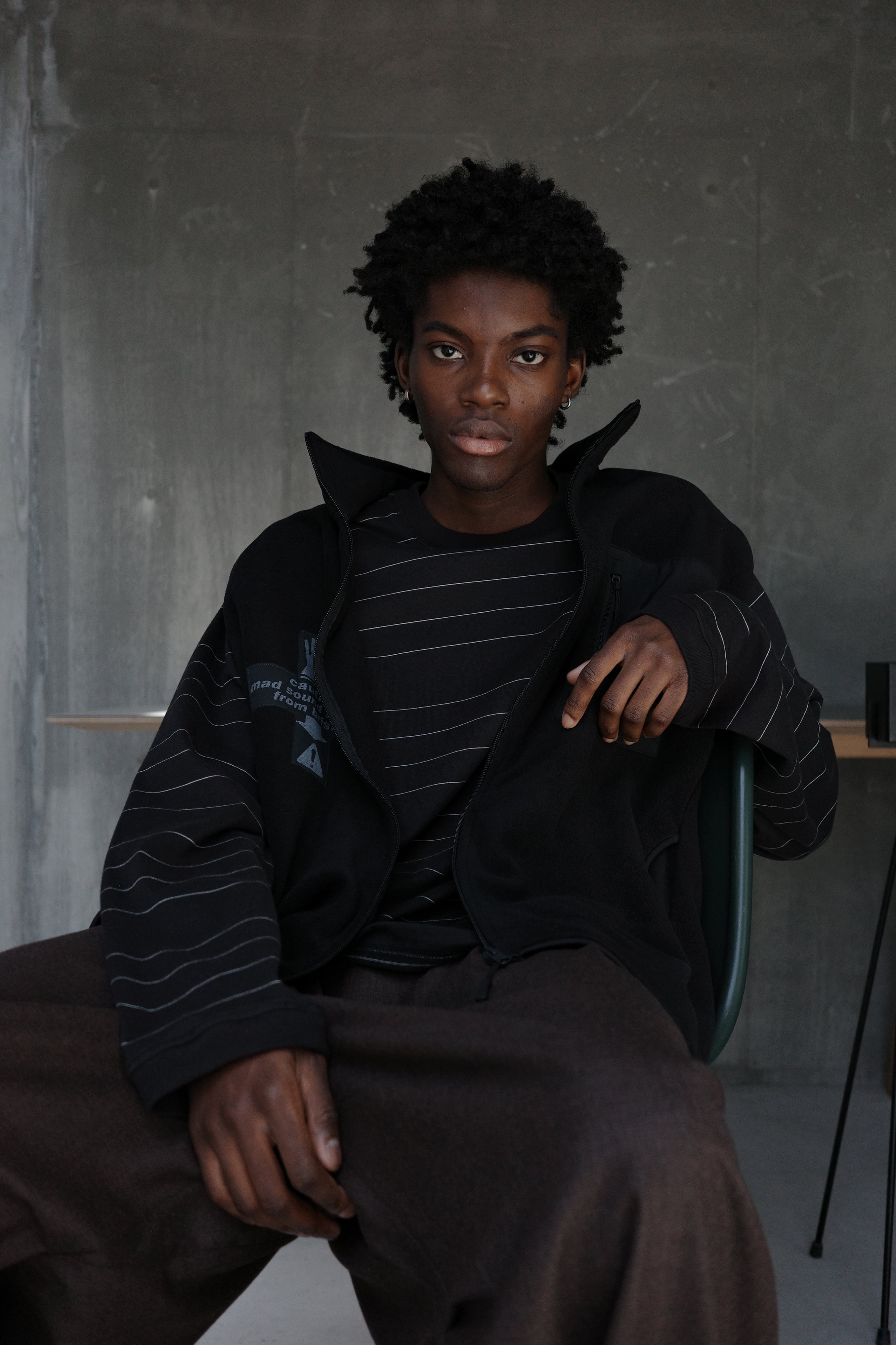 SHADOW BLACK OPEN COLLAR SHIRT