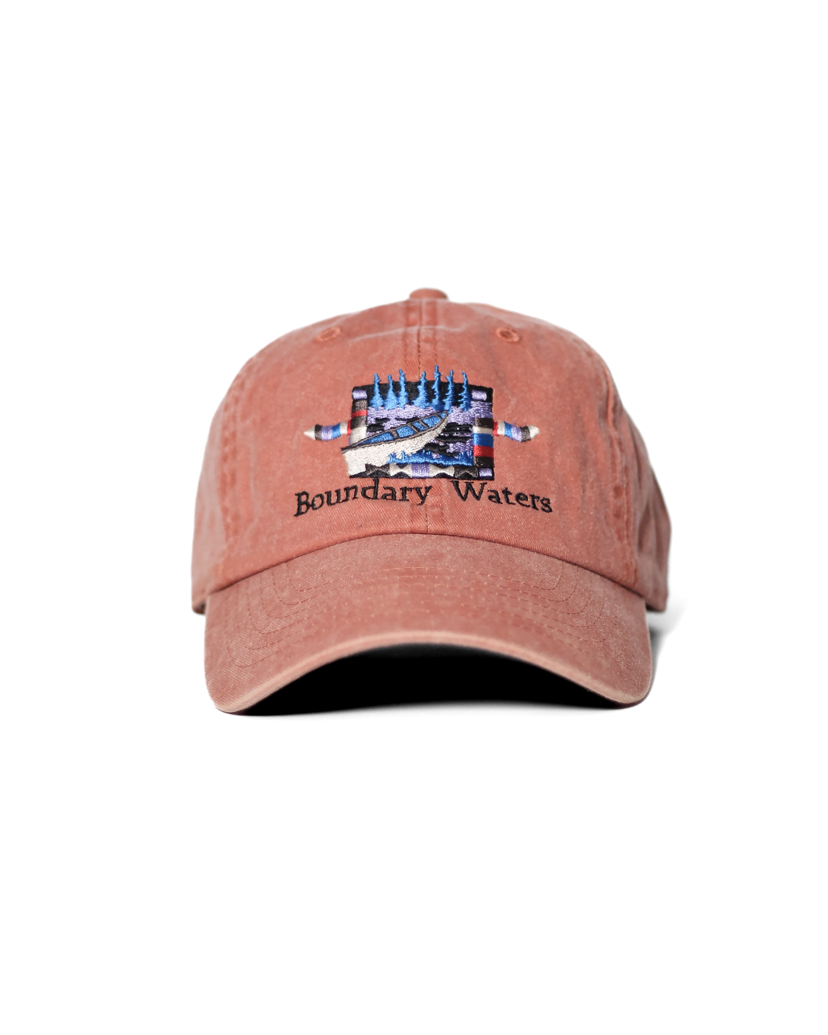 ピグメントコットンを使用。ピグメント染めによる着古したような風合いが特徴。アメリカ・ミネソタ州の自然保護区「Boundary Waters」のスーベニアキャップを着想にしたデザイン。