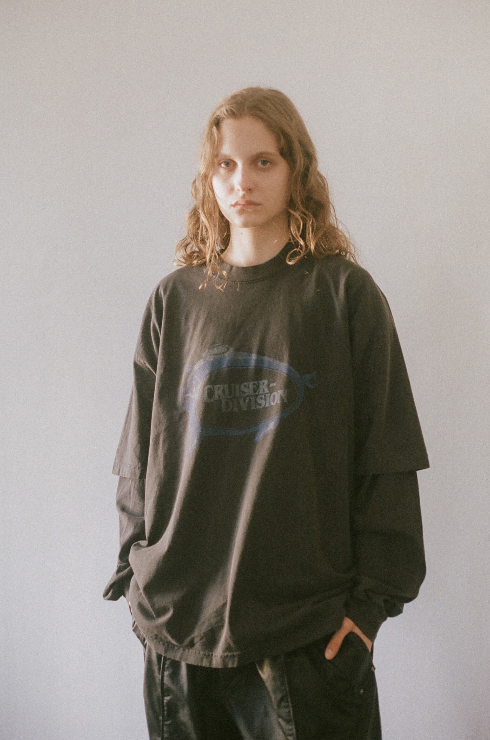 6.5ozヘビーウェイト天竺を使用。ピグメント(顔料)染めにより、洗いを重ねるごとに風合いが増す生地感が特徴。
